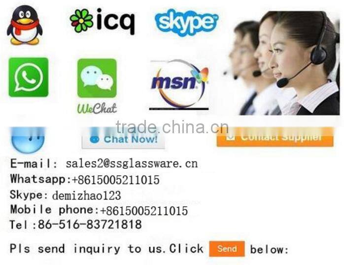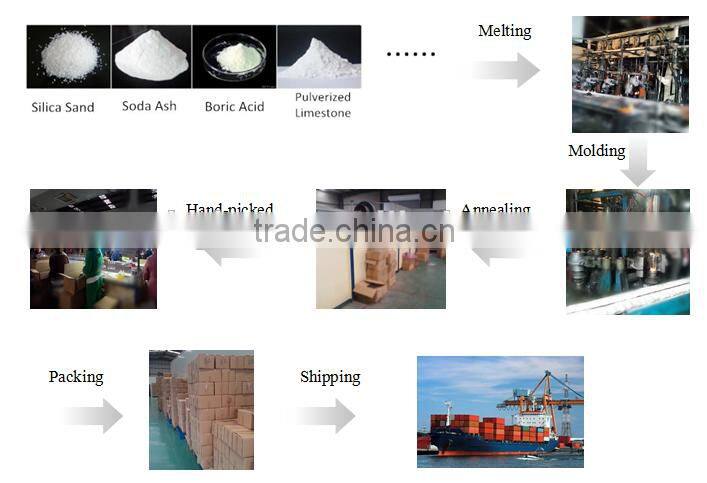 Factory have more than 300 workers and our furance can made 30 000tons/year;5 sets Glass production line; belong six or four sets single and double drip,other semi-auto and CNC6S glass machines; Also have excellent QC groups and perfect testing equipment.