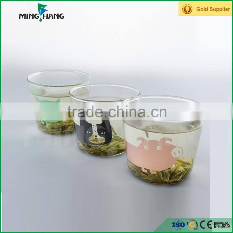 Hot Sale Cartoon Printed 260ml Borosilicate Glass Mug Clear Glass Cup Supplier's Choice