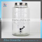 High Quality Glass Jar Dipenser Clear Embossed Glass Decanter With Tap