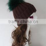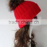 New Design Custom Cheap Fashion Winter Hat With Raccoon Fur Pompom