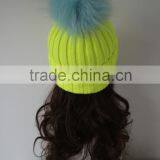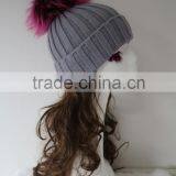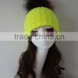 New Arrival Multicolor Raccoon Fur Ball Kniited Wool Cap Colorful Fur Pompom Knit Rib Acrylic Hat