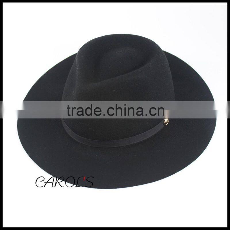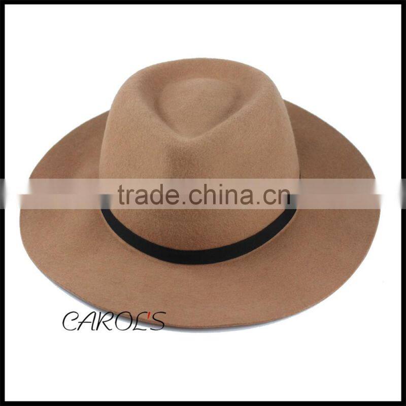 Unisex Wool Felt Hat With Black Ribbon Black Outdoor Trilby Hat for Wholesale