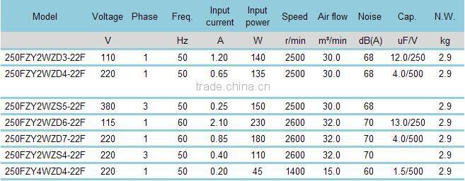 | Model Number | 250FZY4WZD4-22F- large air flow ac ventilator | Voltage | 220V | |