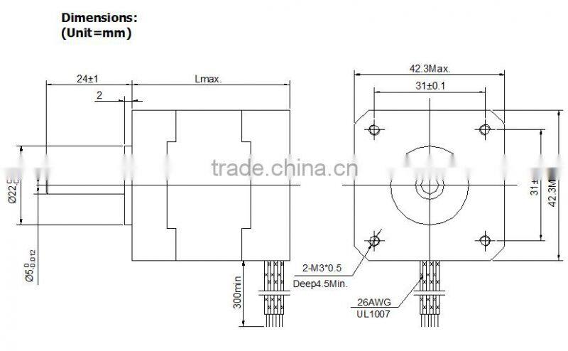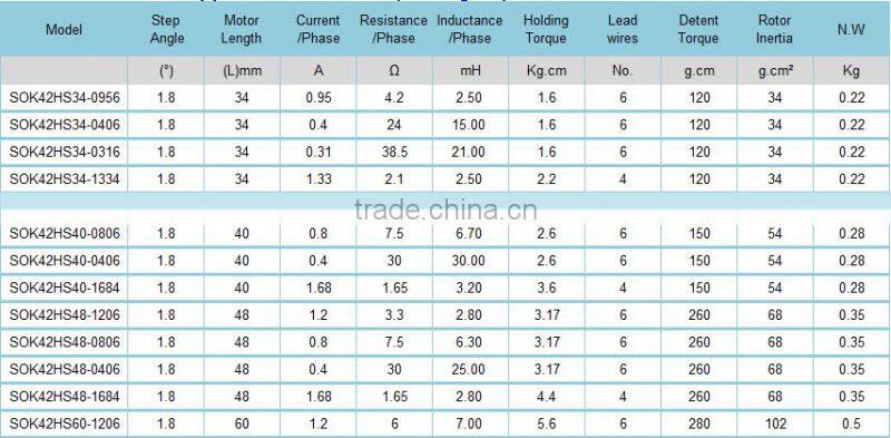 Note: The typical specifications below are just for your reference. Stepper motors can be customized. Please feel free to contact us if you can’t find the motor you required. We are always here being ready to help.