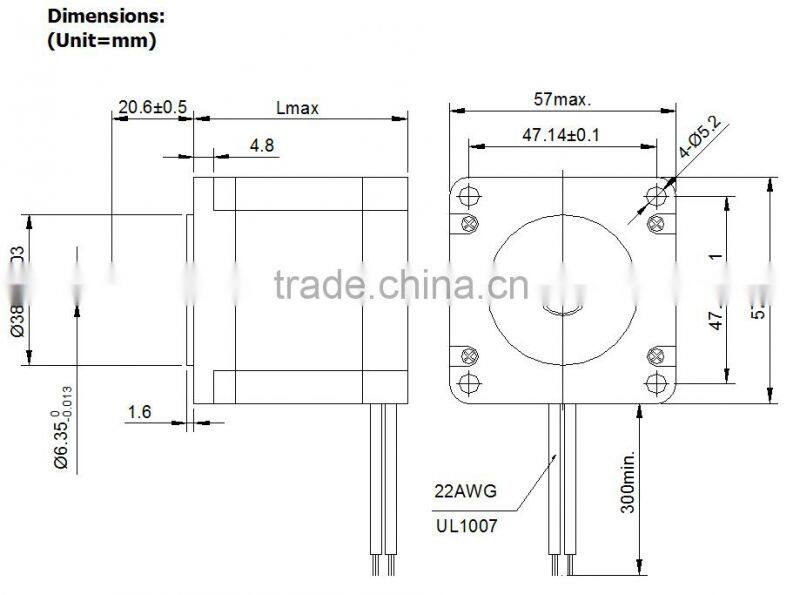 Note: The typical specifications below are just for your reference. Stepper motors can be customized. Please feel free to contact us if you can’t find the motor you required. We are always here being ready to help.