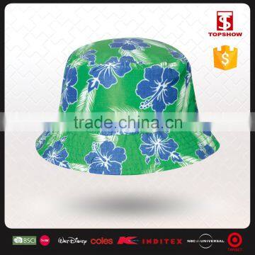 Blue Floral Printed Polyester Bucket Hats for Parents and Child