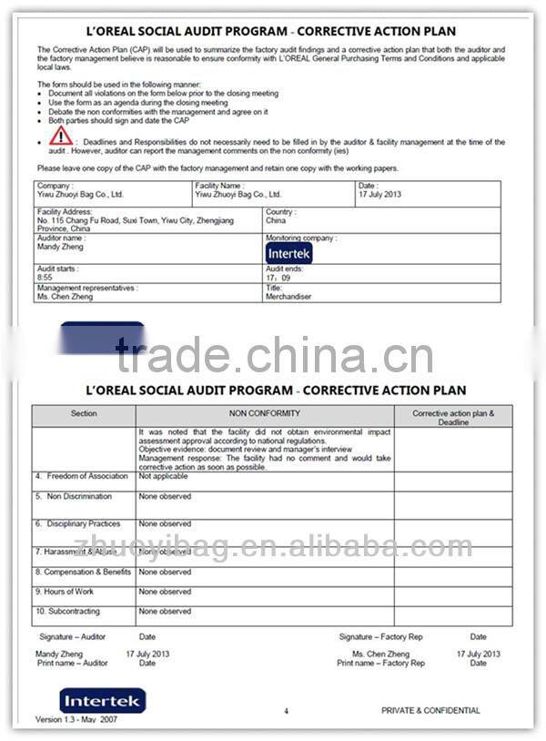 L'OREAL Social Audit Program-Corrective Action Plan