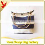 2016 Rope Decor Handing Tote Bags With Black And White Stripes