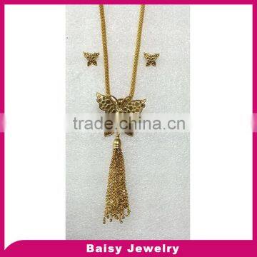latest design butterfly stainless steel tassel necklace wholesale jewelry set