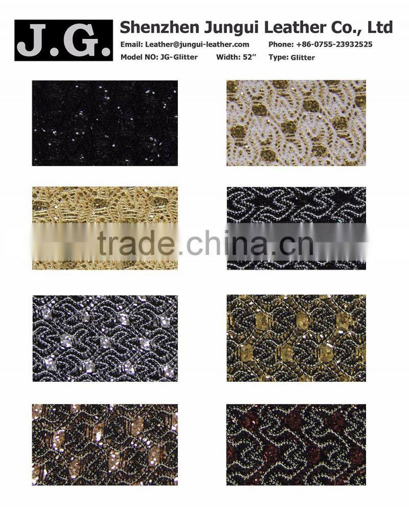 Hot Sell Glitter Fabric PU Synthetic Leather for Shoes, Bags, Boxes, Cases, and Book Cover