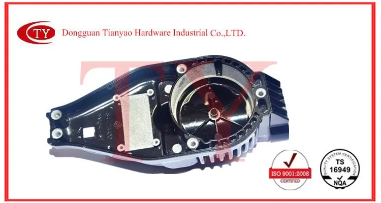 Tianyao Hardware was established in 2008, at Liaobu, Dongguan. We are a domestic type company which specilized in magnesium and aluminum die casting. We own from mould making, product producing, polishing, drilling, tapping, machining, CNC pricision machining, testing equipment... With the development of our company, we are dedicated to quality requirement, and we passed the ISO9001: 2008 and TS 16949.