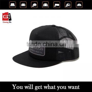 High Quality Custom Blank Plain 3D Embroidery Logo Flat Brim Black Snapback Trucker Cap Wholesale