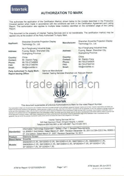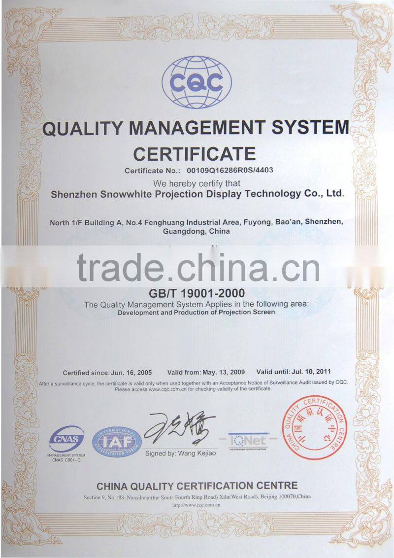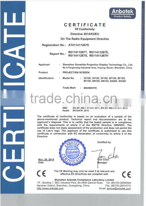 The trademark SNOWHITE has being a famous brand worldwide, screens have been sold to over 80 countries with good reputation in projection industry, and gotten coincident praises from dealer and end users.