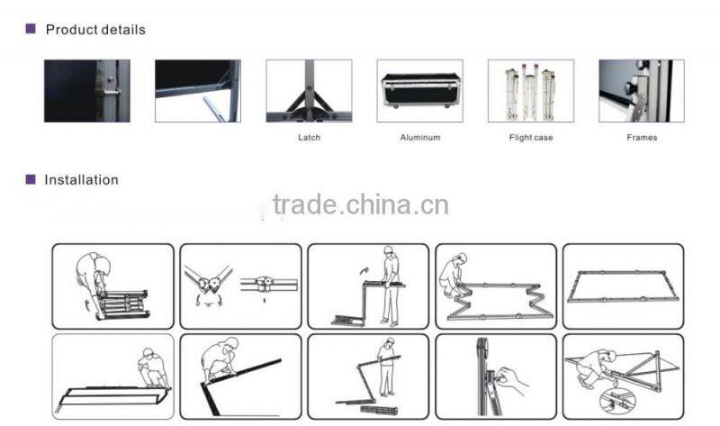 1. Adopt imported soft front and rear fabric.For front fabric,white video fabric and grey video spectra Suitable for show,concert,banquet and large-scale business activity etc...