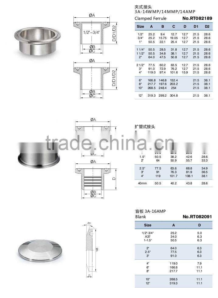 3A Standard Sanitary Stainless Steel Tri Clamp Ferrule