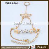 Wholesale Fashion Unique Design Personalized Gold Plated Rhinestone Butterfly Bracelet With Ring