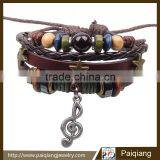 Fashionable Exaggerated Music Note Leather Woven Beaded Bracelet