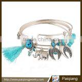 European Fashion Multi Layered Elephant Beads Tassel Wire Bracelet