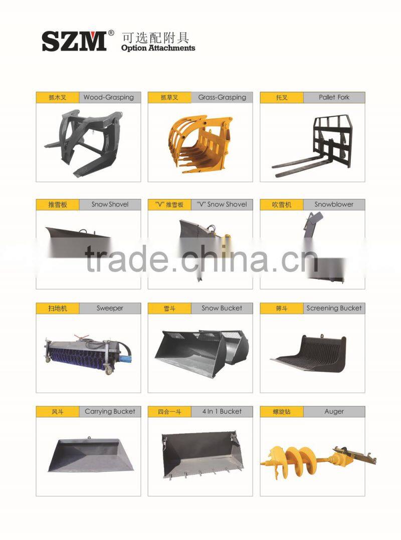 5. (Quick change )option attachment: wooden fork, pipe, pallet fork, grass fork, rock bucket, bigger bucket, snow bucket, mixing bucket etc