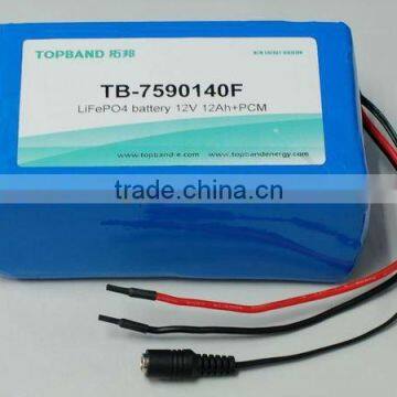 2012 New LiFePO4 Battery TB-7590140F 12V 12AH With PCM Used for Robots