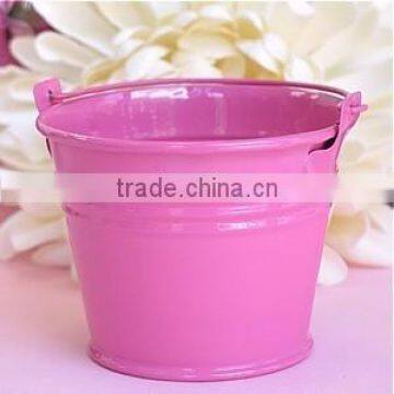 and the top of the pail is approximately 2 5/8" in diameter. These mini pail favors come in the following custom-painted colors: blue, green, light pink, fuschia, yellow, white, red, chocolate brown, and ivory.