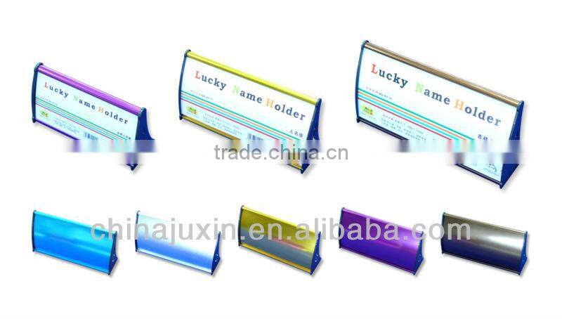 Aluminium Lucky Name Holder perfect for displaying advertisements , sale ,attending conference person information. Papers slide from sides quickily and easily change content.