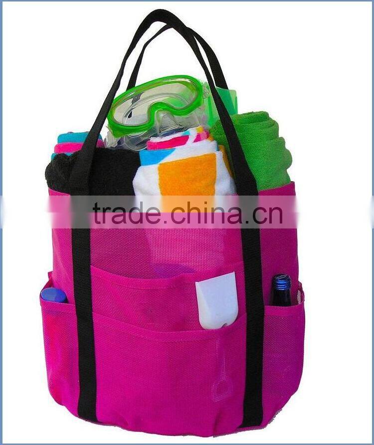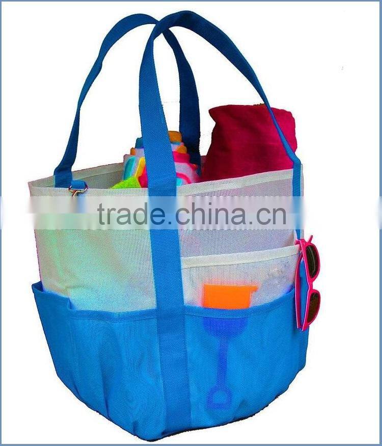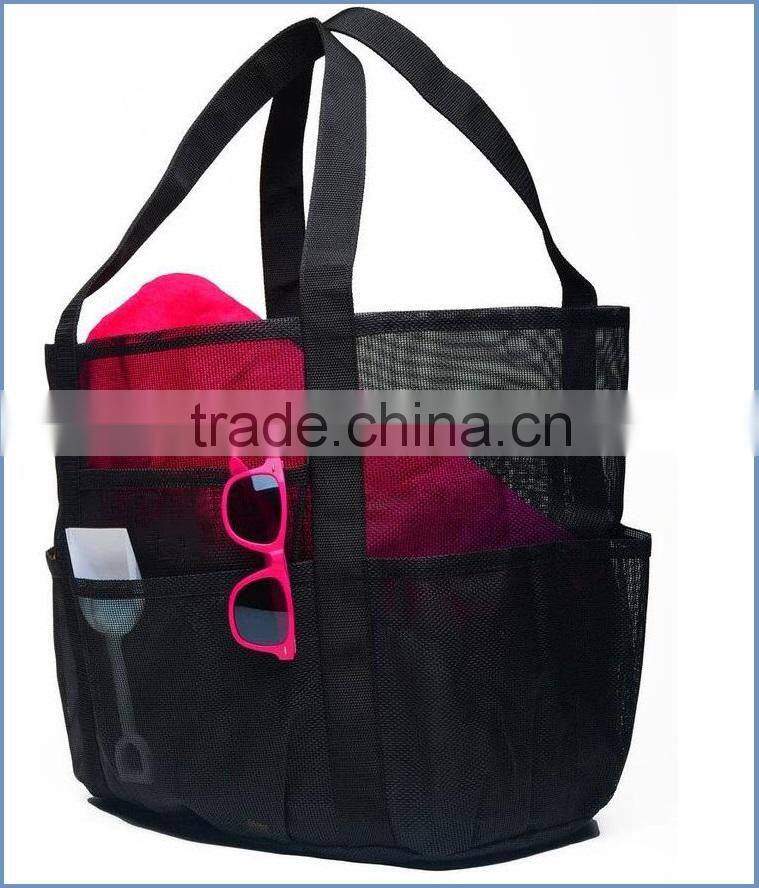 Storage Type, Wholesale Cheap Tote Bag Style Nylon Mesh Bag / Foldable Mesh Beach Towel Bag with Multi Pockets