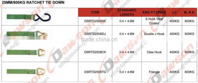 Double J hook 25 mm / 800 kg ratchet tie down