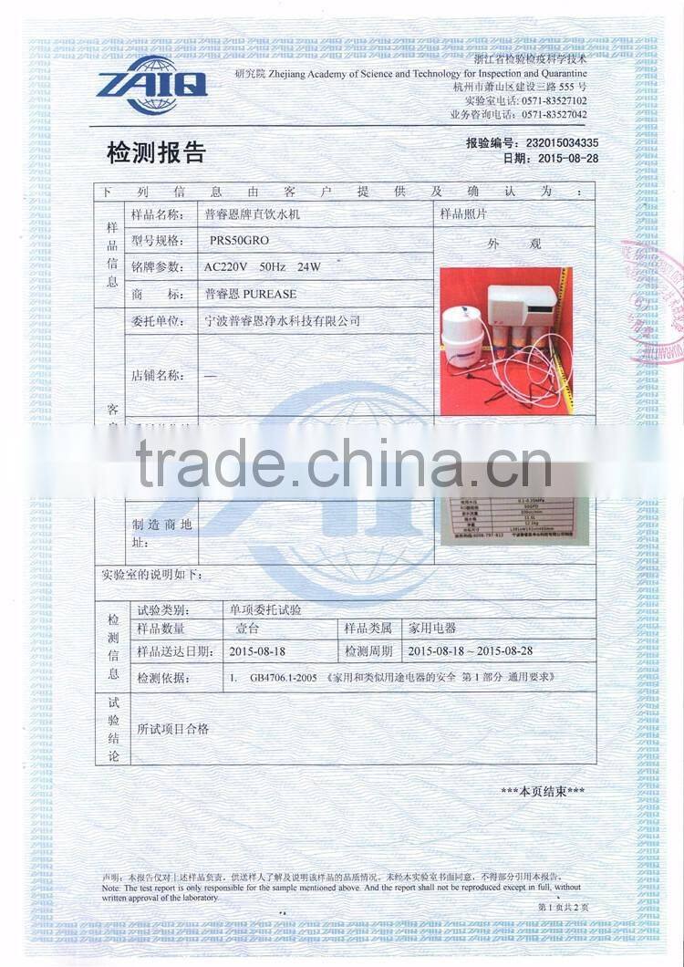 Ningbo purease water purifcation technology co., ltd is located in ningbo ninghai, is a professional production of household, commercial water purifiers and provide high quality water purification services of high-tech technology enterprises.The company has always attached importance to product development and manufacturing, has the domestic advanced precise production line and test line 3, injection molding machine 8 units (120 t, 280, 360, 360 t).Punch machine 58 sets (30 t, 50 t, 80 t, 125 t), spray line, products cover pure water machine, kitchen water purifier, direct drinking water purification machines, water softeners, pre filter, pipeline machine, large-scale engineering equipment and other products.