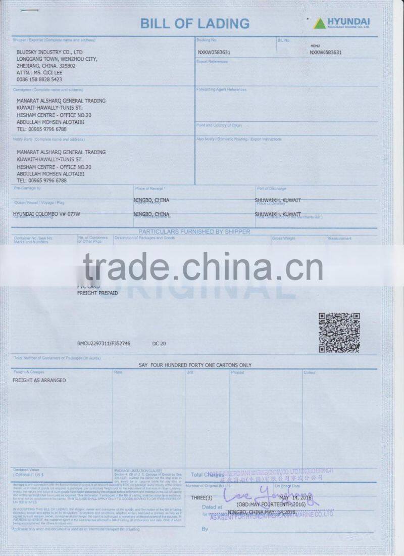 We'll offer all original documents to you. We are professional on export handling.