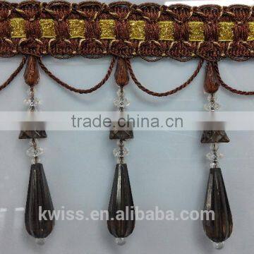 black curtain tassel fringe with beautiful beaded trim,polyester beaded fringe