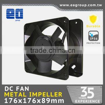 Taiwan UL CE TUV ROHS Certified IP55 DC Cooling Fan DC Metal Impeller With DC Brushless Fan Motor in 176x176x89mm