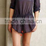 2015 Summer Sexy for Woman, Roll-tab Sleeve and Front up Placket With Drawstring Front Waist Sheer Dress- SYK15081