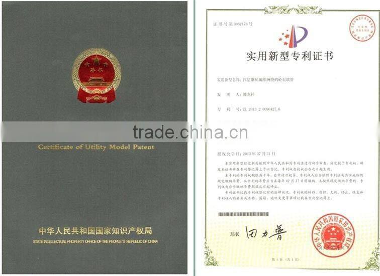 Our national patent rubber hose has 4 layers steel wire spiral with high working pressure and burst pressure. Used for famous brand, such as Putzmeister, Schwing, Sany, CIFA, Zoomlion etc.