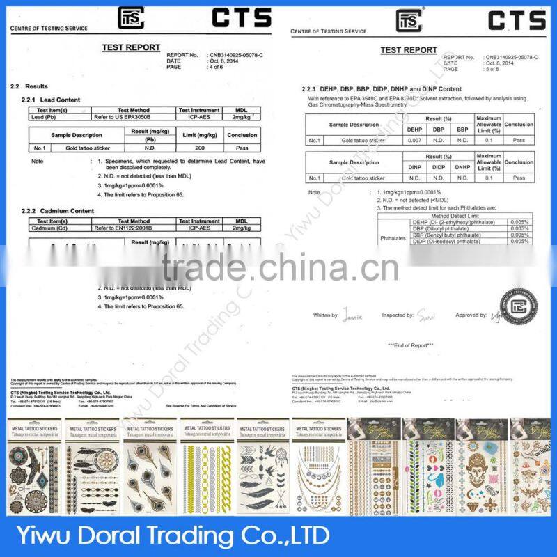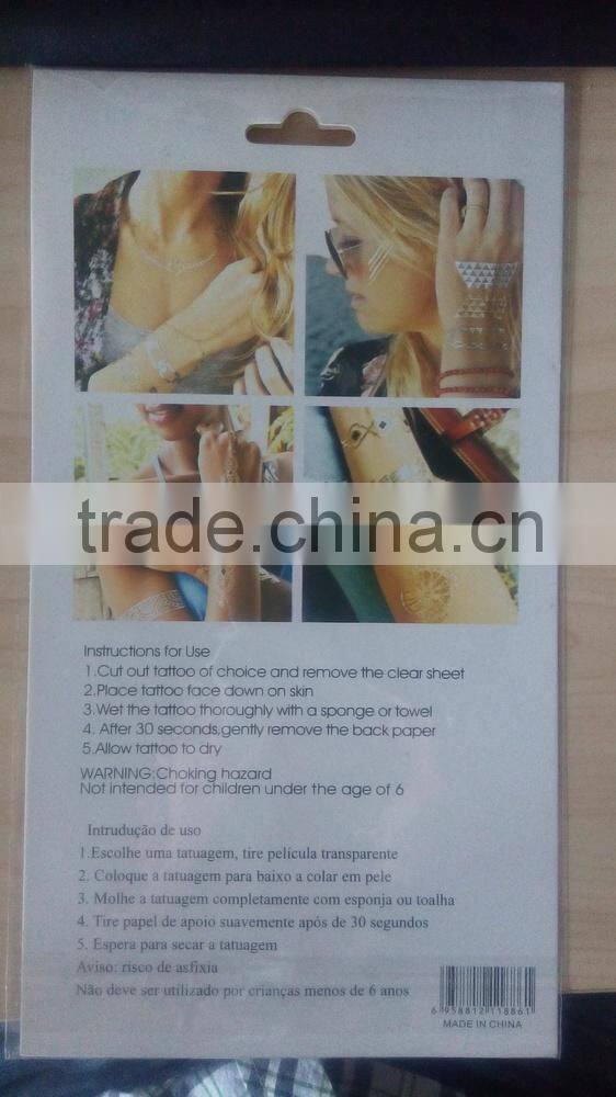 body metallic temporary bracelet tatoo/ gold chain metallic tattoo stickers for hands