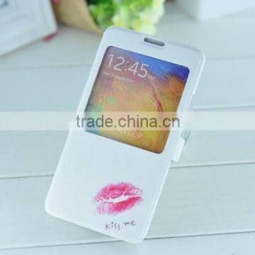 unique design cell phone case with smart window leather flip case for samsung galaxy note 3