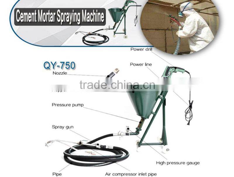 QY-750 High pressure mortar spraying machine is a screw pump type high-pressure mortar spraying machine, with advanced technology, simple operation and maintenance, it can be operated skillfully without special training. QY-750 High pressure mortar spraying machine adapted spraying material included: putty powder, paint, latex paint, lacquer, cement mortar, dry mortar, thermal insulation, waterproofing materials, fireproof materials, insulation materials, sound-absorbing materials and other water-soluble material.