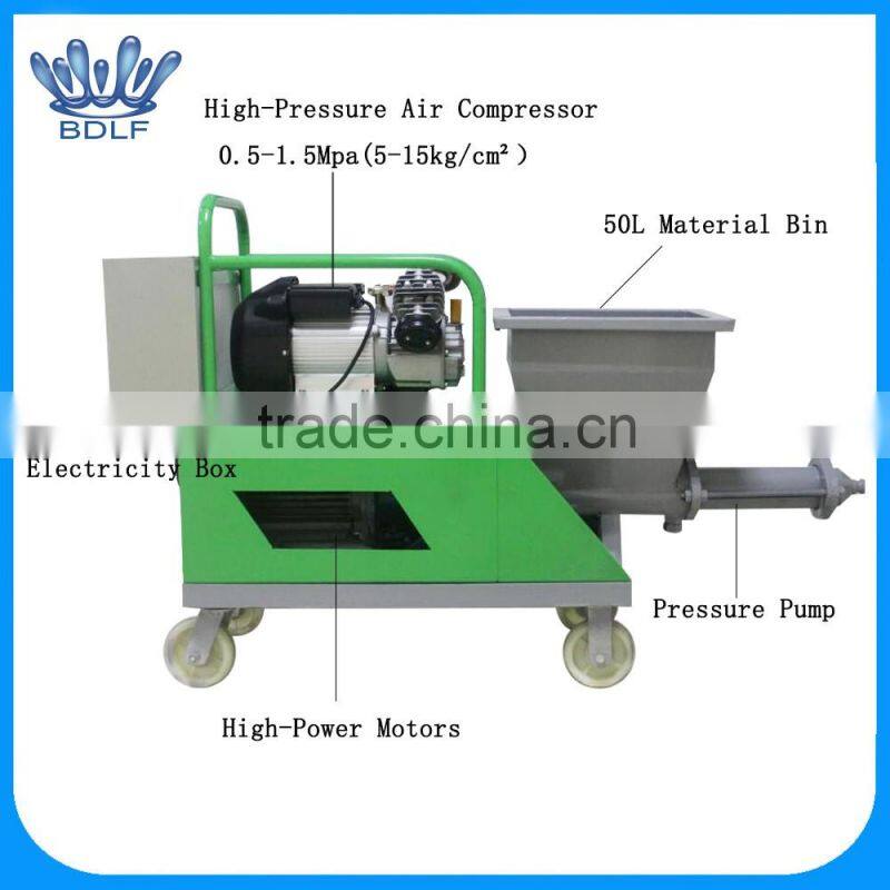The cement spraying machine is mainly used in the building construction industry, both insideand outside wall for plastering and spraying mortar, external wall insulation mortar spraying, the materials can be mortar roughcast, refractory coating, large building spraying fire material, waterproofing coating and so on.
