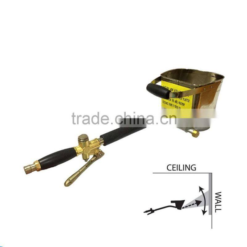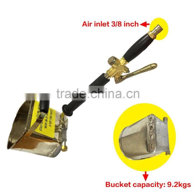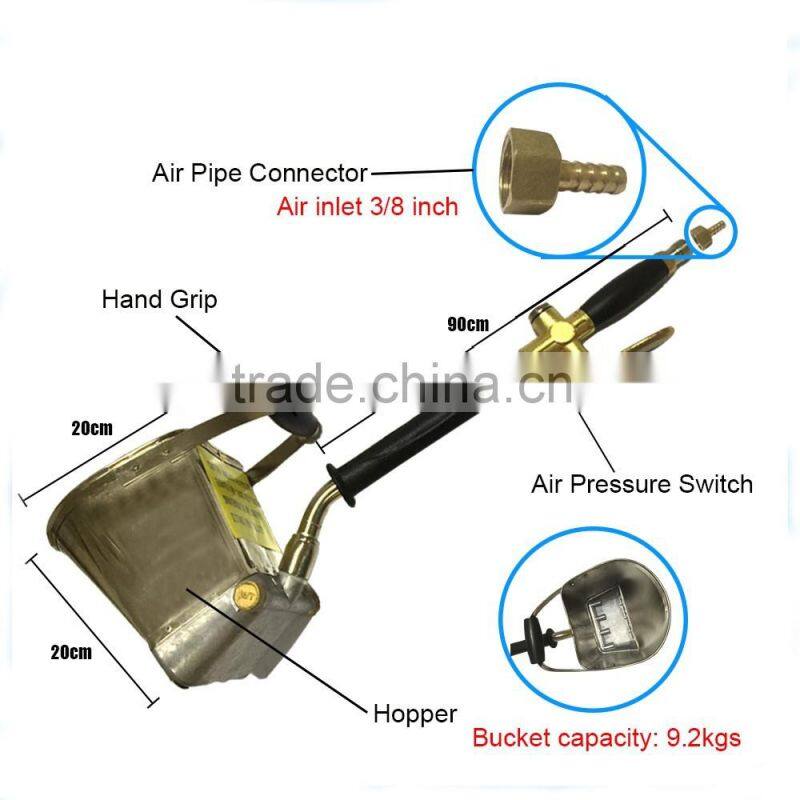 BDLF Stucco Sprayer Hopper Gun can be used for plastering a stucco house, traditional plastering of stucco such as one coat or three coat stucco or GFRC. The range is from 1/8" heavy texture to 1" thick structural layers. It can also be used for applying plaster, hard coat stucco, EIFS, small scale shotcrete, cement, concrete, papercrete, earthen mixes and more. Hopper made from stainless steel material, with a life time anti-rust guarantee. Will spray: Sand /Cement Slurries, plaster spray products, Grout, GFRC, GFRG Monokot Mk-6, Cafco-300, and other Fireproofing materials. For best performance we recommended to use 12 cfm @ 100 psi (340 liter@ 7 bar) gas power or electric air compressor, with 15 to 30 gallon (60-114 liter) air tank. We also include additional 4 brass air jet to use with small air compressor that delivers only 4-6 cfm @ 90 psi. Hopper includes with 2 cover bolts that allow you to plug one or two holes at the tip for narrow spraying capabilities.