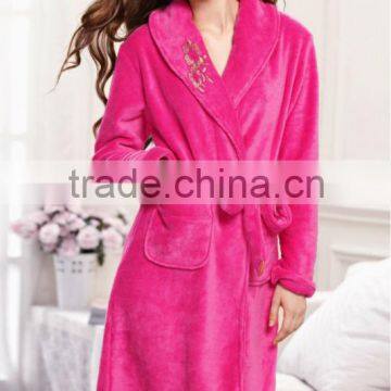 100% polyester fleece Bathrobe with Embroidery1)high quality bathrobe