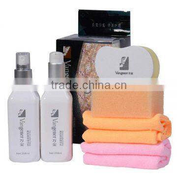 1. 258ml*2 cleaning and care kit2. exquisite white bottle stand itself out