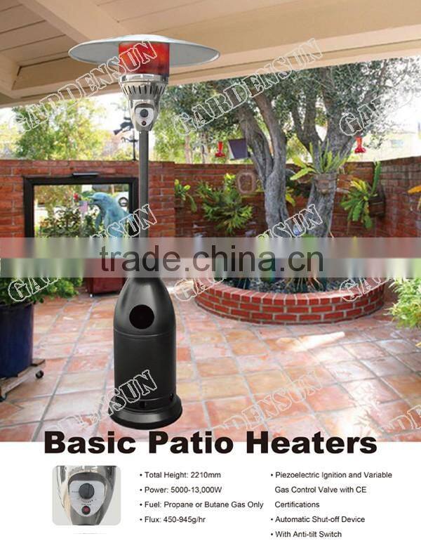 Garden Gas Heater (Bullet Patio Heater Powder Coated Black,CE) GARDENSUN 5000-13000W With CE CSA AGA ISO