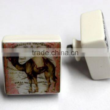 Designer Printed Ceramic Drawer Pull Knobs With Metal Fittings