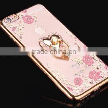 Bling Diamond Ring Holder Phone Case Crystal Flexible TPU Cover for iphone 6 with Kickstand