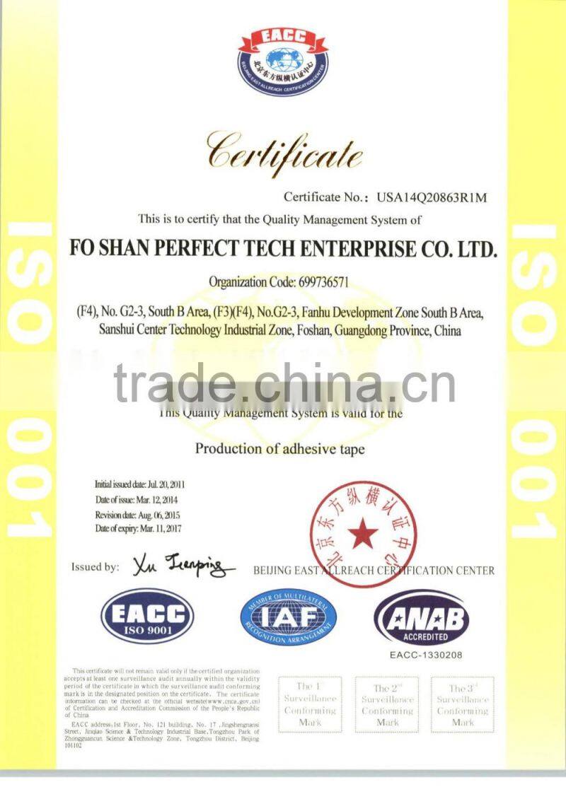 PERFECT TECH ENTERPRISE CO.LTD established in 1999, it is a company specializing in a series of adhesive tapes. The plant is located in Foshan, Guangdong, China. We have more than 200 employees of which 100 are technicians .We are equipped with the advanced high-speed coating lines and well management system , and have imported several production lines which is leading all over the world . Our annual coating capacity reaches 360 million m2 and the annual turnover reaches 280 million Yuan. ‘Good Faith, Morality Orient’ is our management faith, we constantly improve and innovate our products and service, our brand ‘’PERFECTAPE” and “PROMAXCO ‘’ had been created as famous ones. We have steady clients from over 70 countries .and the annual export sales is over 15 million U.S. Dollars.