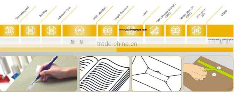 Stationery tape is made with water-based acrylic adhesive coated on Bopp films; Applicable to general sealing, paper mending, fixing & splicing and gift wrapping, Easy-Tear is better and convenient to use without cutting machine at home, office and school. Available in variety of widths, lengths and colors to meet your special requirement.