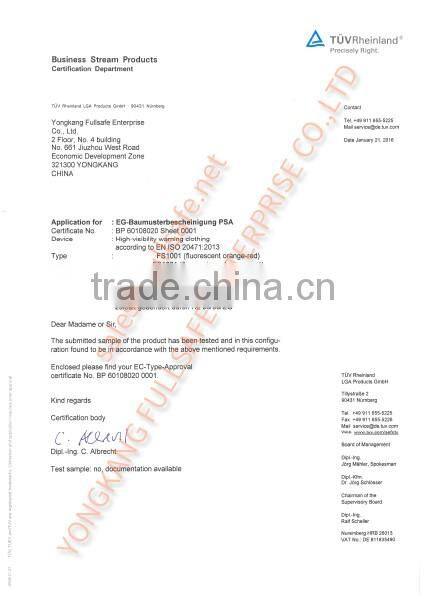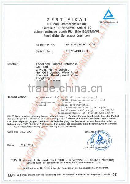 We are a professional factory in safety clothing: vest, parka bomber jacket, coverall, jacket, bipartisan pants, etc for over 10 years. We offer more than 300 items and supply over 50 customers worldwide. We can be your leading partner by our experience, honesty, quality and service. Contact us now.