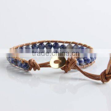 Newest Popular White &blue Stone Leather Bracelet Woven Lap 6 mm Wear Bracelet All Hand Needle for Women Chain Bracelet