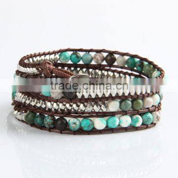 Pure Natural Turquoise Paragraphs Female Winding Bracelet for Men and Women Lovers in Tibet