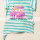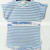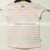 "100%COTTON GIRL'S KNOT SLEEVE TEE WITH PINK/WHITE STRIPE T-SHIRT"